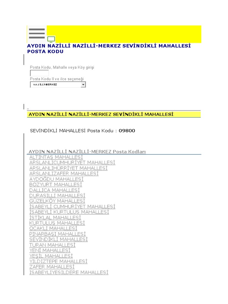 Psta Kodlari Nazilli